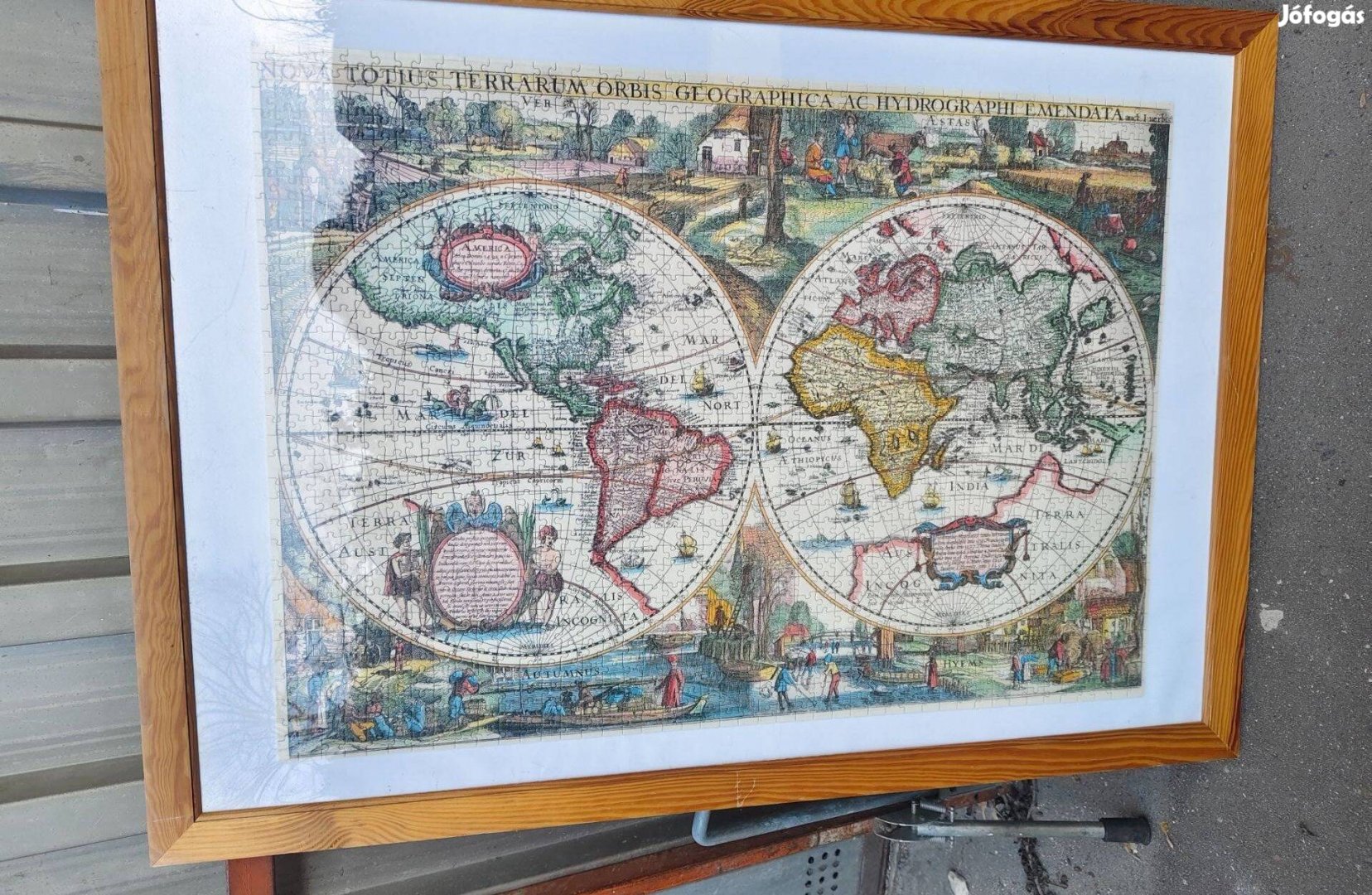 Kiváló állapotban lévő, puzzle-ból kirakott világtérkép, fa keretben eladó!