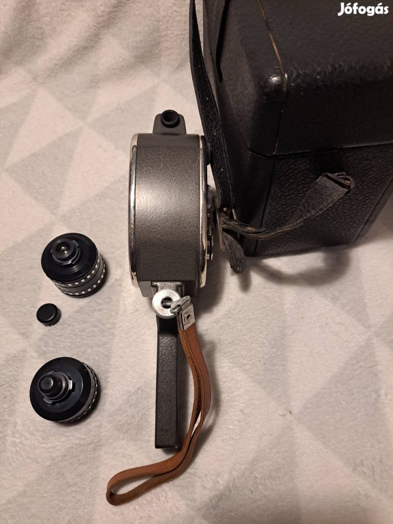 Quarz 2M 8 mm-es filmfelvevő, felhúzós vintage kézikamera a 60-as évekből, eredeti táskájával, minden tartozékkal. Működőképes. Déli pu. vagy XVI. ker. is átvehető vagy küldemény