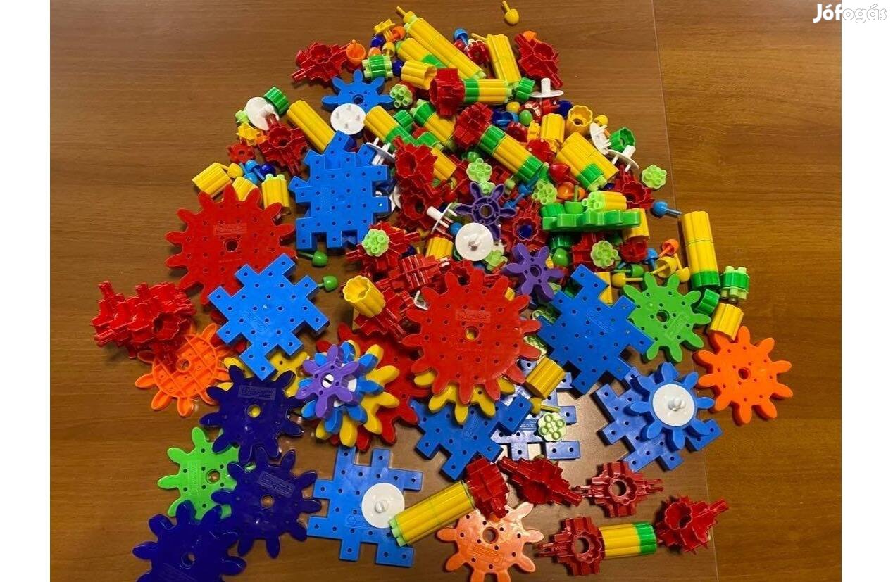 380 darabból álló finommotorikusan fejlesztő logikai játék. Jó minőségű műanyagból készült francia építő- és készségfejlesztő játék gyerekeknek. Néhány fogaskerék hiányos, de nagy része hibátlan.