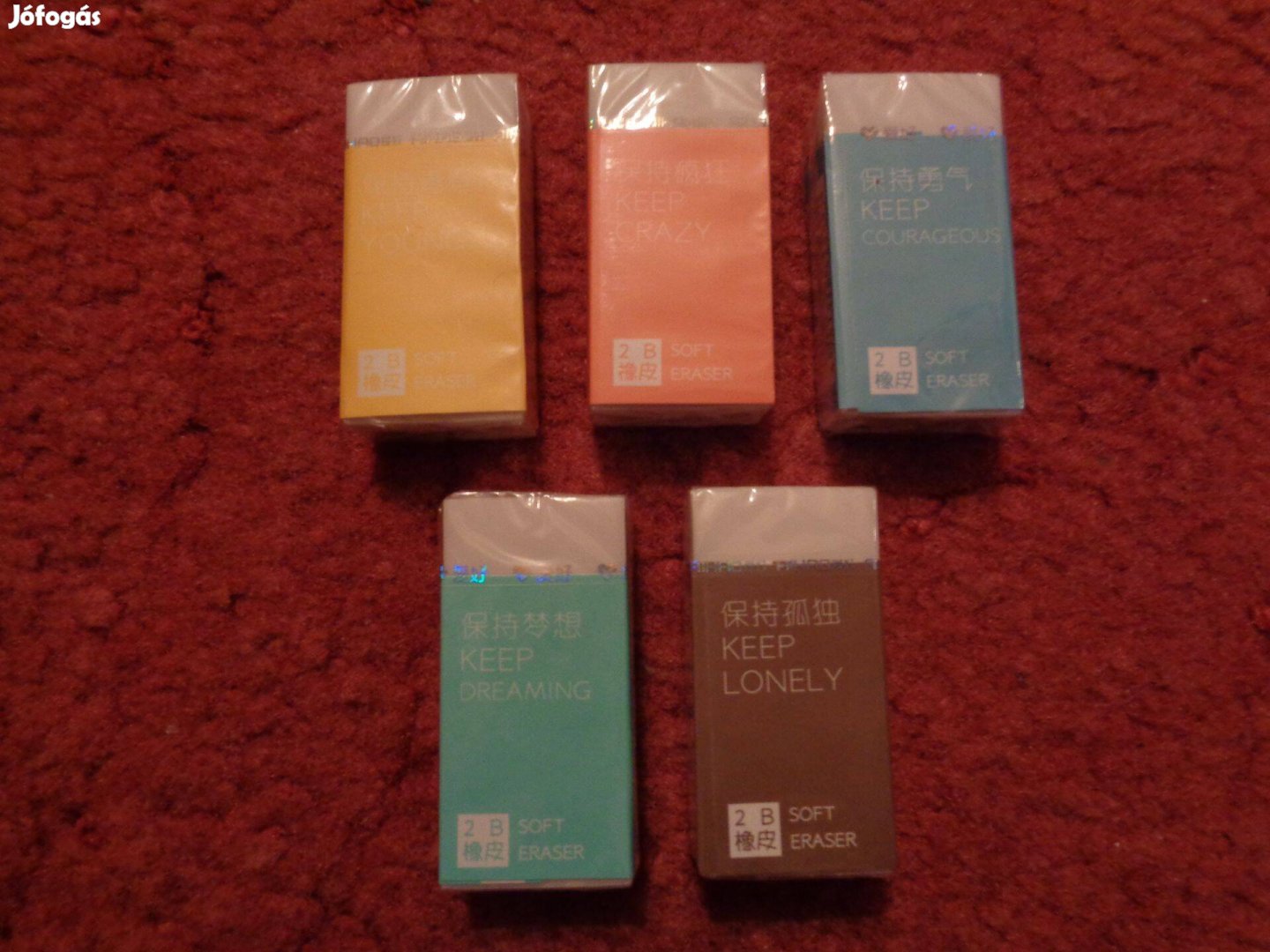 Radírok: 5 féle 2B soft eraser radír, 100ft/db