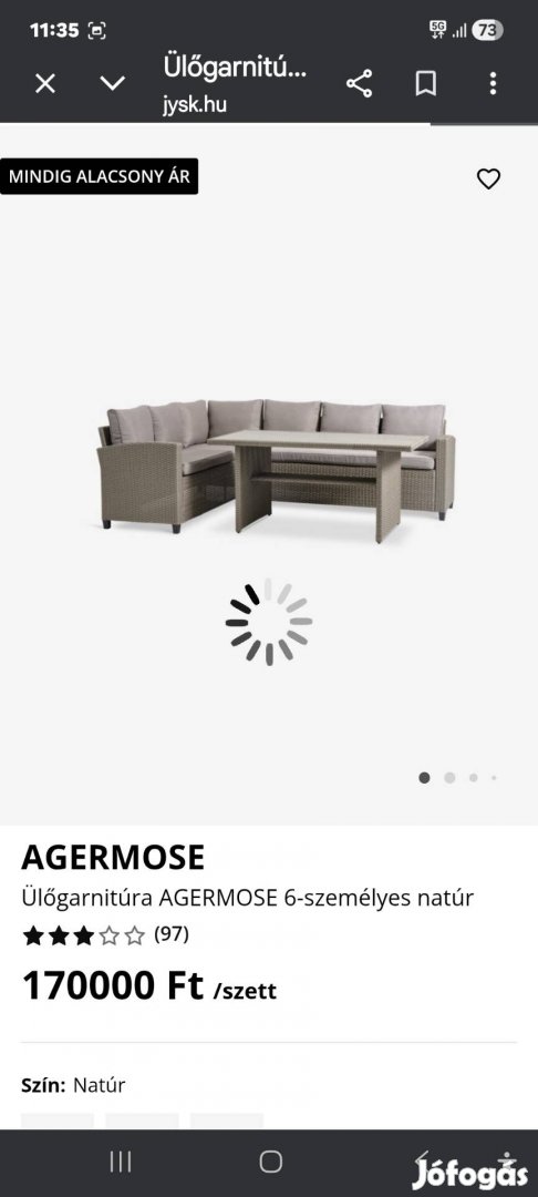 2 éve Jyskben vásárolt műrattan sarokgarnitúra. A párnák moshatóak. Keret bézs színű a párnák világos szürke. Az asztal lapja foltos, ahogy a képeken is látszik, sajnos azt már nem lehet letakarítani. Használatból adódó kisebb hibák vannak a garnitúrán, de összességében kiválóan használható. Jelenleg is kapható, ára 170.000 Ft. 3. kerületből elszállítható.