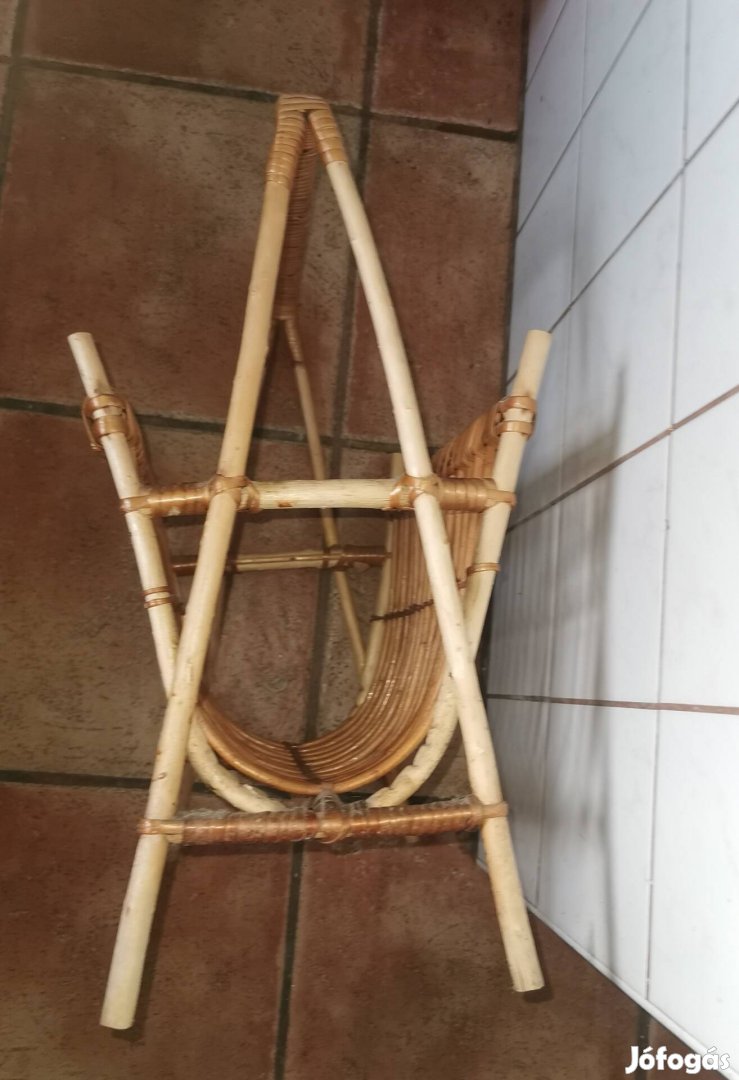 Eladó a képen látható vintage rattan újság tartó. Szép stabil Állapotban. Nincs el törve megserulve, de az idő azért látszik rajta.
