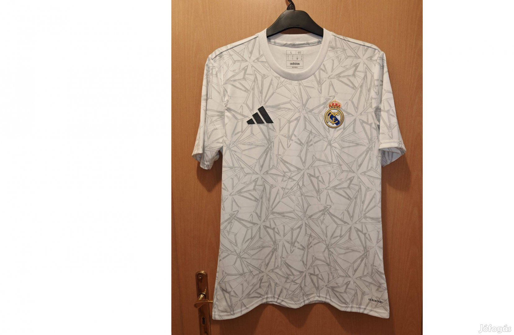 új, címkés, eredeti adidas Real Madrid 2023-24 fehér ezüst edzőmez