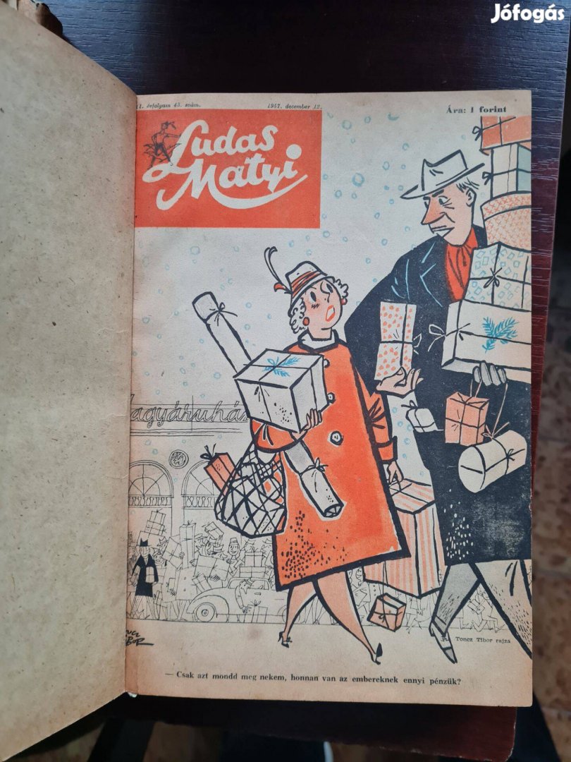 Ludas Matyik gyűjteménye az 50-es, 60-as évekből (1957-61, nem teljes évfolyamok) igényesen bekötve, megkímélt állapotban eladók. 30-40 újság lehet, igény esetén meg tudom mondani, pontosan mely számok.