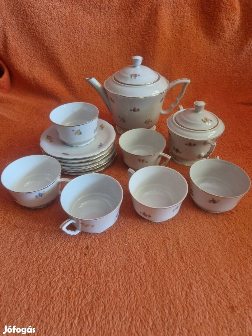Eladó régi Zsolnay teáskészlet, 6db csésze, 6db kistányér, 1db kiöntő, 1db cukortartó, budapesti személyes átadással.