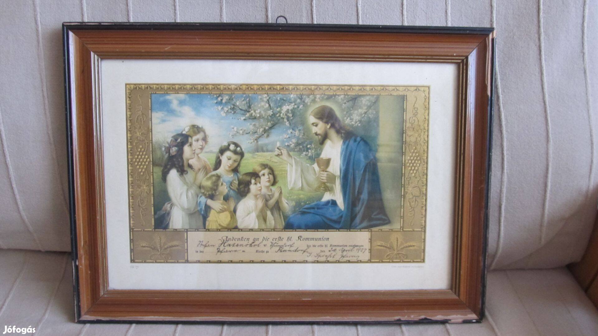 Eladásra kínálom a képen szereplő, régi, 1927.04.24 elsőáldozási emlékképet fa keretben. A képek magukért beszélnek. Körbe fotóztam. Üveglap van az elején. Ritka, szépséges darab.