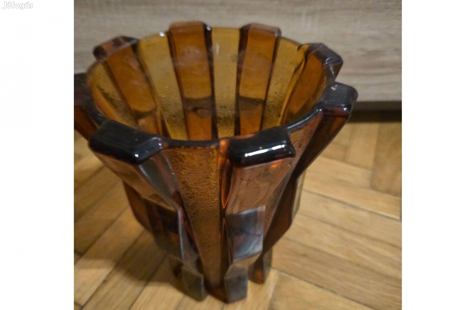 régi, nagyméretű, vastag üveg váza, barnás színű