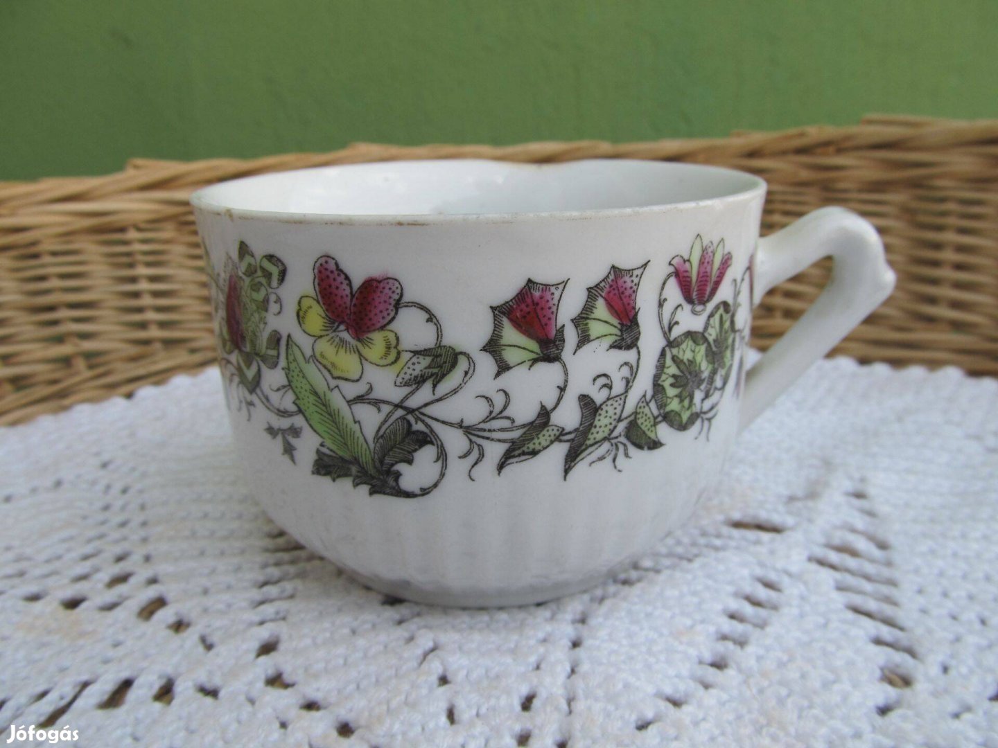 Régi, ciklámen mintás porcelán csésze