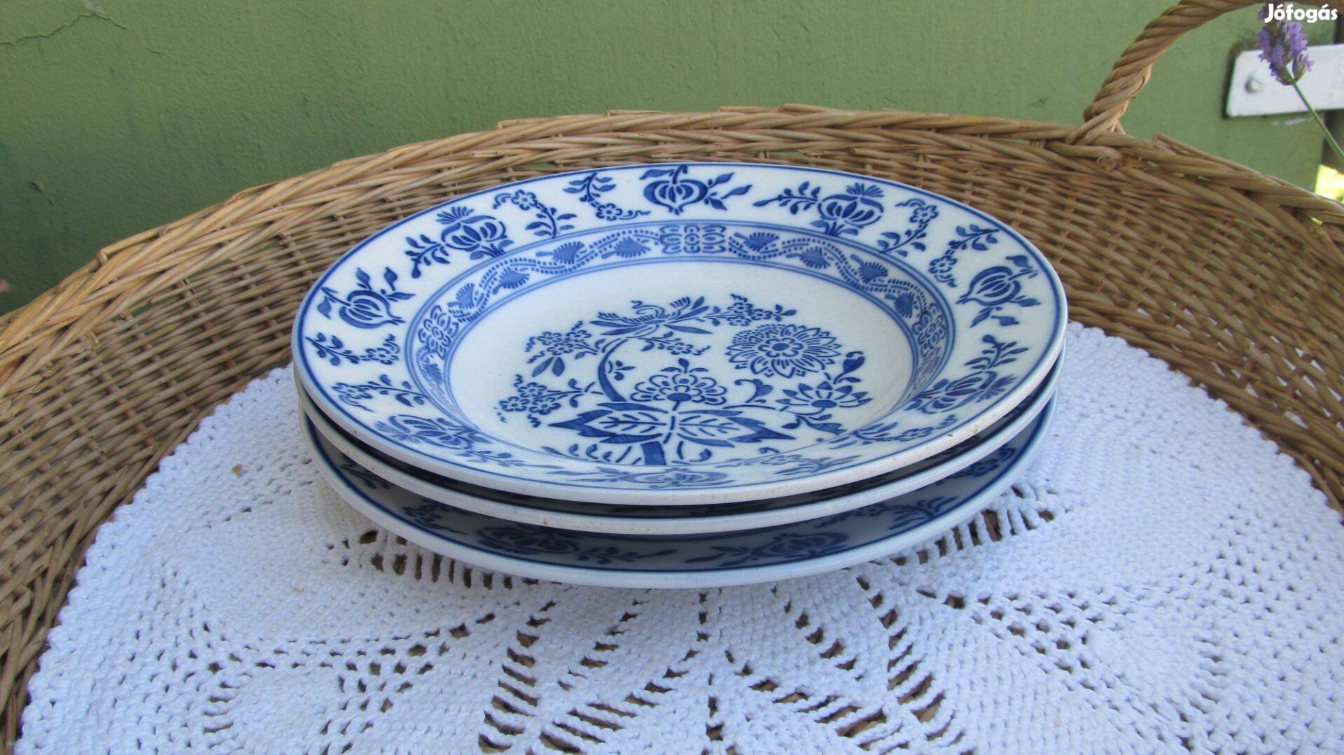 Régi, jelzett, Villeroy & Boch Dresden hagymamintás fajansz tányér 3 d