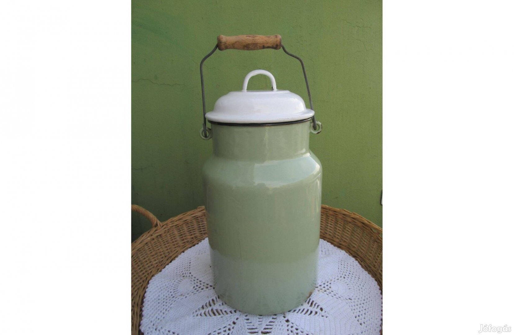 Eladásra kínálom a képen szereplő régi, zománcos kannát. A képek magukért beszélnek. Körbe fotóztam. Hibák a képeken látszanak. Nem lyukas használható állapotban..