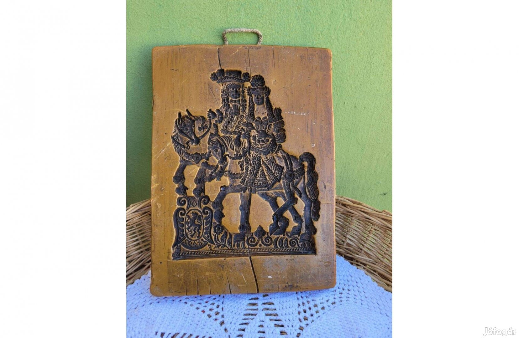Eladásra kínálom a képen szereplő régi, nagyméretű viasz mézeskalács ütőfát - lovagló fiú-leány. A képek magukért beszélnek. Körbe fotóztam. Ritka, különleges darab. Sérülések képeken látszanak, korához képest szép állapotban. Ritka, különleges darab.