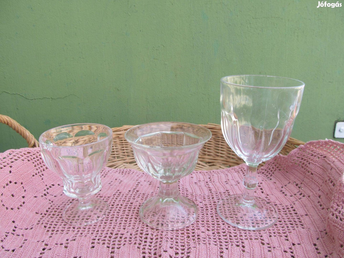 Régi, öntött üveg kehely 3 db