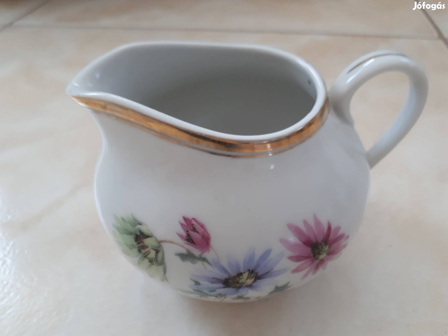 Búzavirág mintás, arany szegélyes, hibátlan állapotú, az űrtartalma: 2,5 dl.