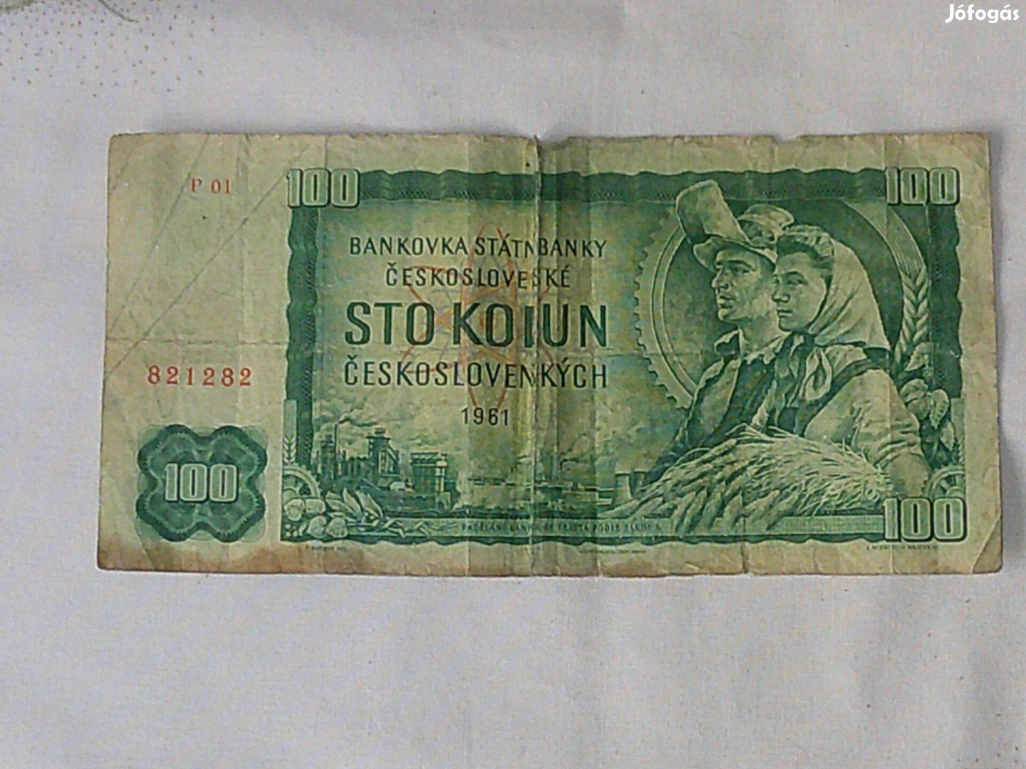 A képen látható régi cseh 100 korona, többet használt, hajtott, 1961-es papírpénz eladó.