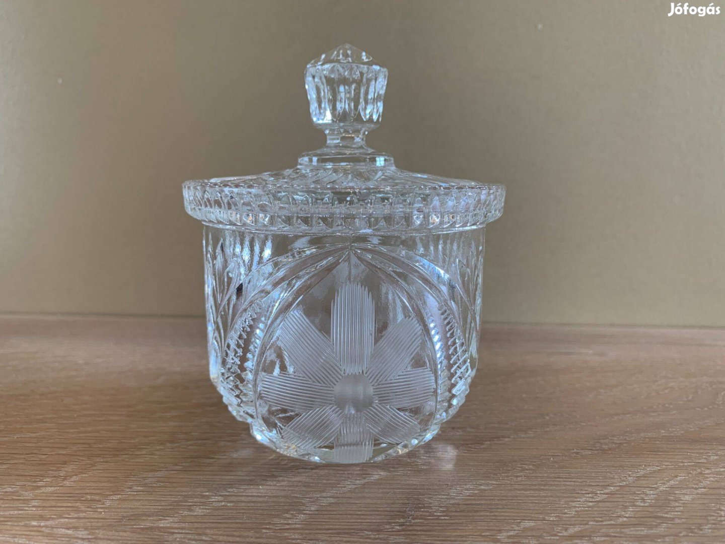 Mérete: 10 cm magas, átmérő 8 cm. Vitrinben tartott, hibátlan állapotban, családi eredet miatt ismert, hogy az 1940-es évekből származik. A tetőn a kiskanálnak kicsiszolt rész található.