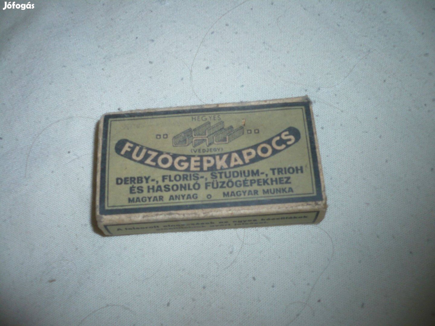régi fűzőgépkapocs doboz, mérete 6,5cm hosszú