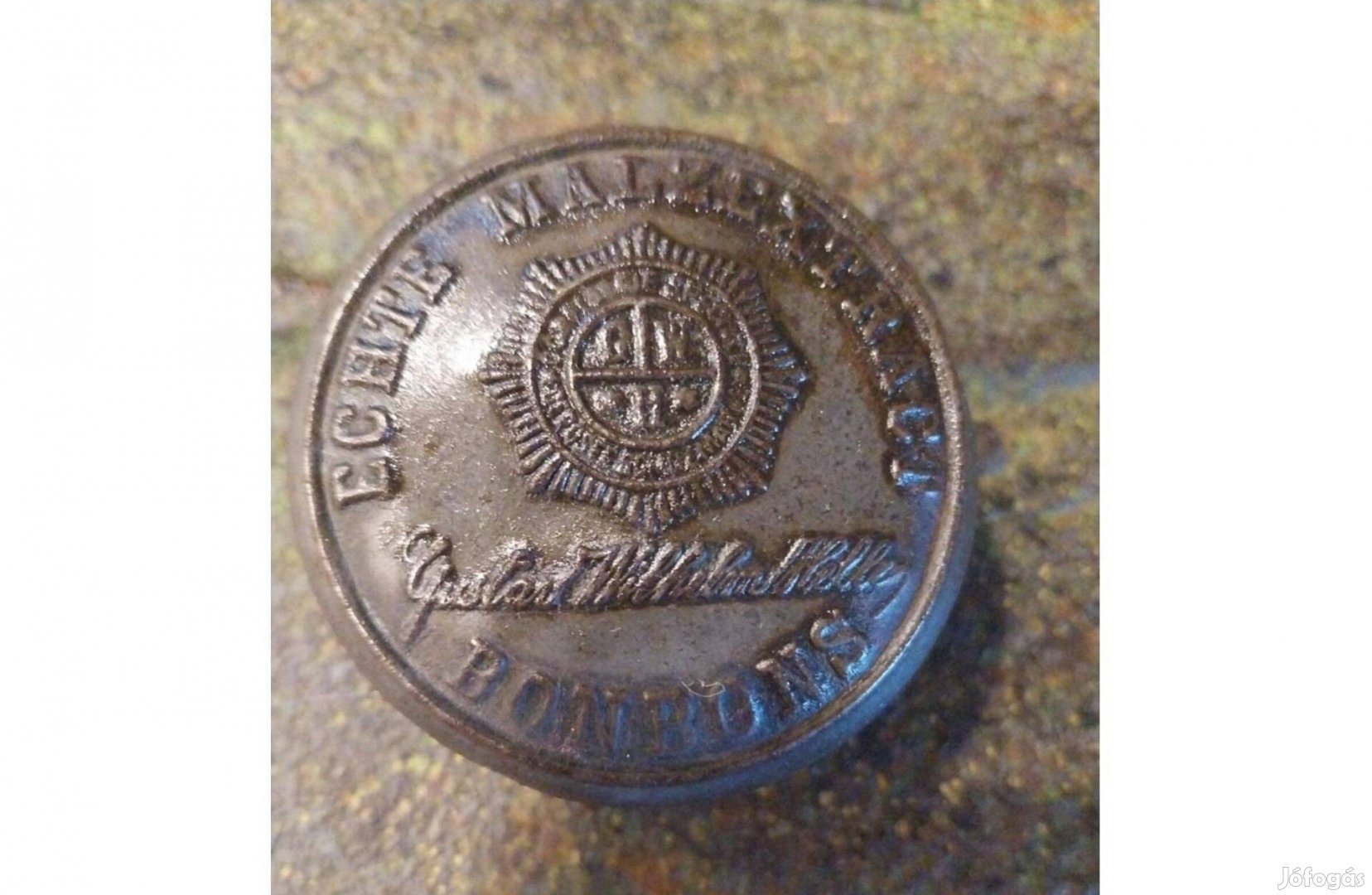 Régi kisméretű bonbonos fémdoboz, Német vagy Holland cukorkás