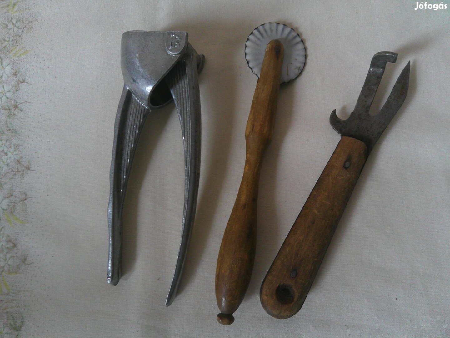 Régi konyhai eszközök ( fokhagymanyomó, derelyevágó. )