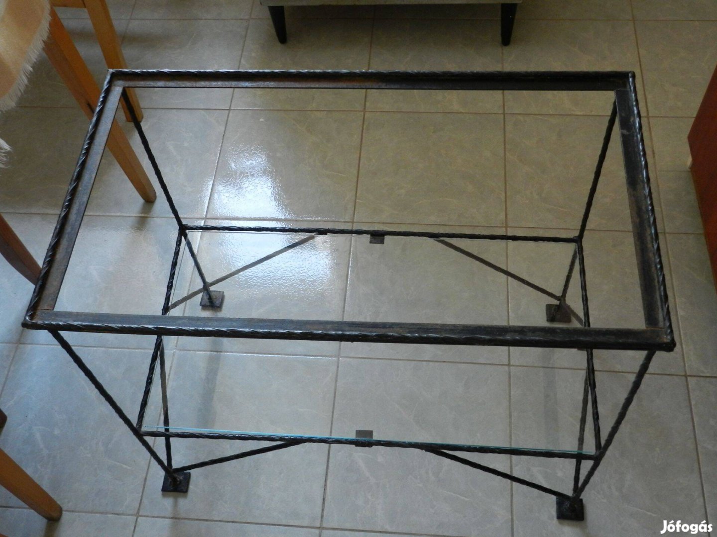 Régi, szép kovácsoltvas asztal eladó a képen látható állapotban. (Egy festés ráfér.) Az alsó része üveglapos, a felső részébe egy falap van. Méretei 70x40x62 cm.