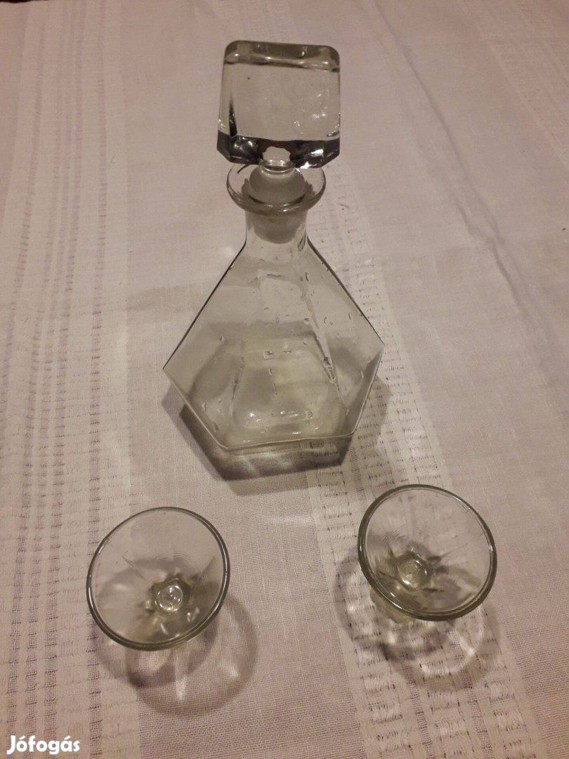 Méret: 21 cm magas, 12,5 cm átmérőjű üveg és 5,5 cm magas, 5,8 cm átmérőjű poharak.