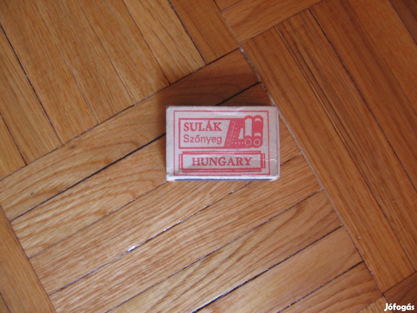 A képeken a két oldala látható. Sulák Szőnyeg Hungary és Legolcsóbban a legnagyobbtól feliratokkal.