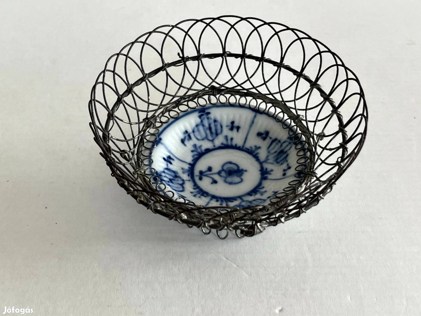 Régi porcelánbetétes hagymamintás, Zwiebelmuster drótfonatos kis tálka