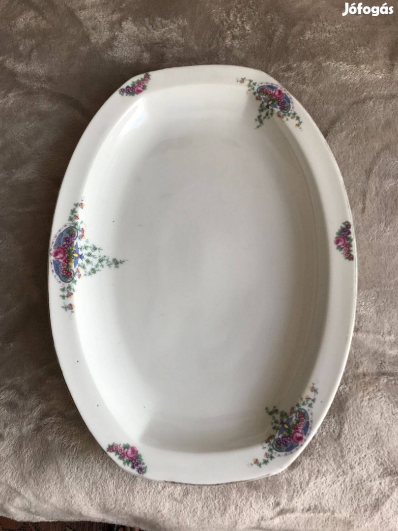 Szolid díszítéssel ellátott régi sütemények húsok tálalására egyaránt használható.