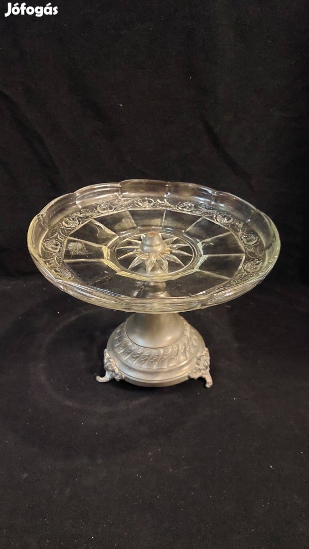 Régi talpas asztalközép kínáló rózsás üveggel