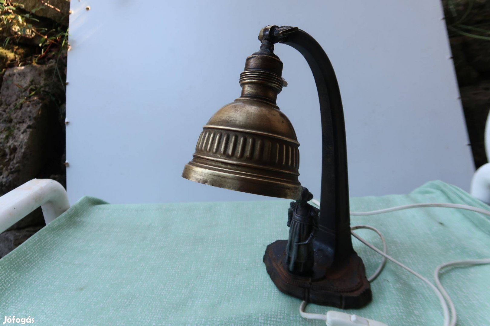 Régi vas-réz - asztali figurával- hangulatlámpa