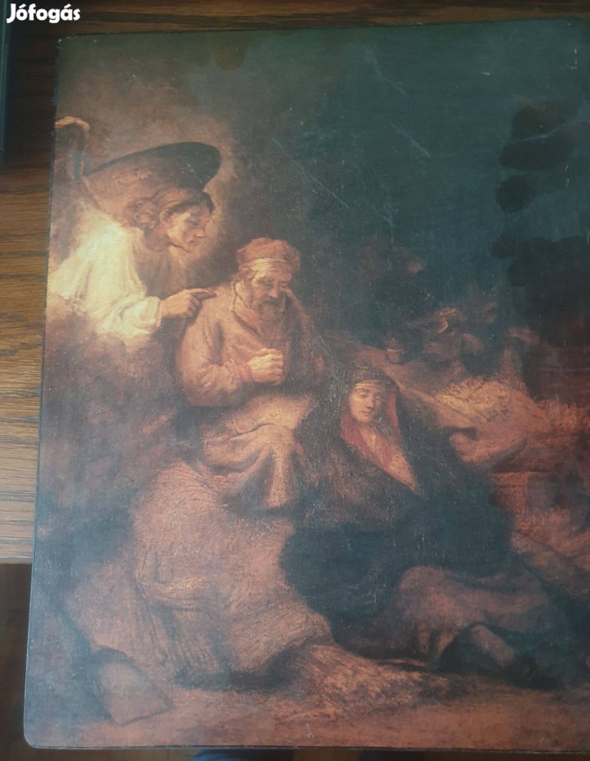34 x 27 cm es fára kasirozott Rembrandt Az angyal megjelenik Szent Józsefnek c. képének reprodukciója eladó.