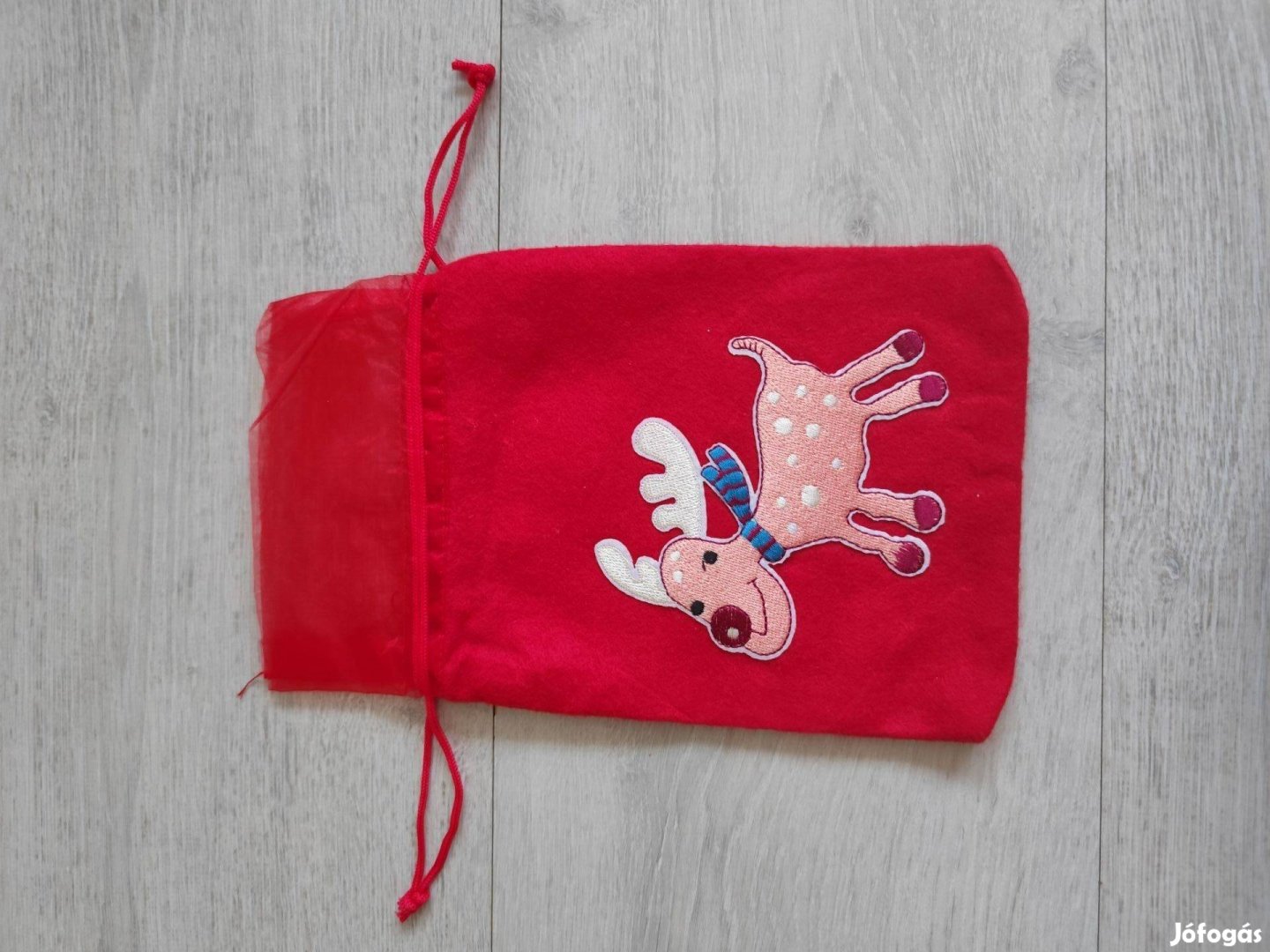 Rénszarvasos Mikulás zsák, összehúzható ajándék zacskó