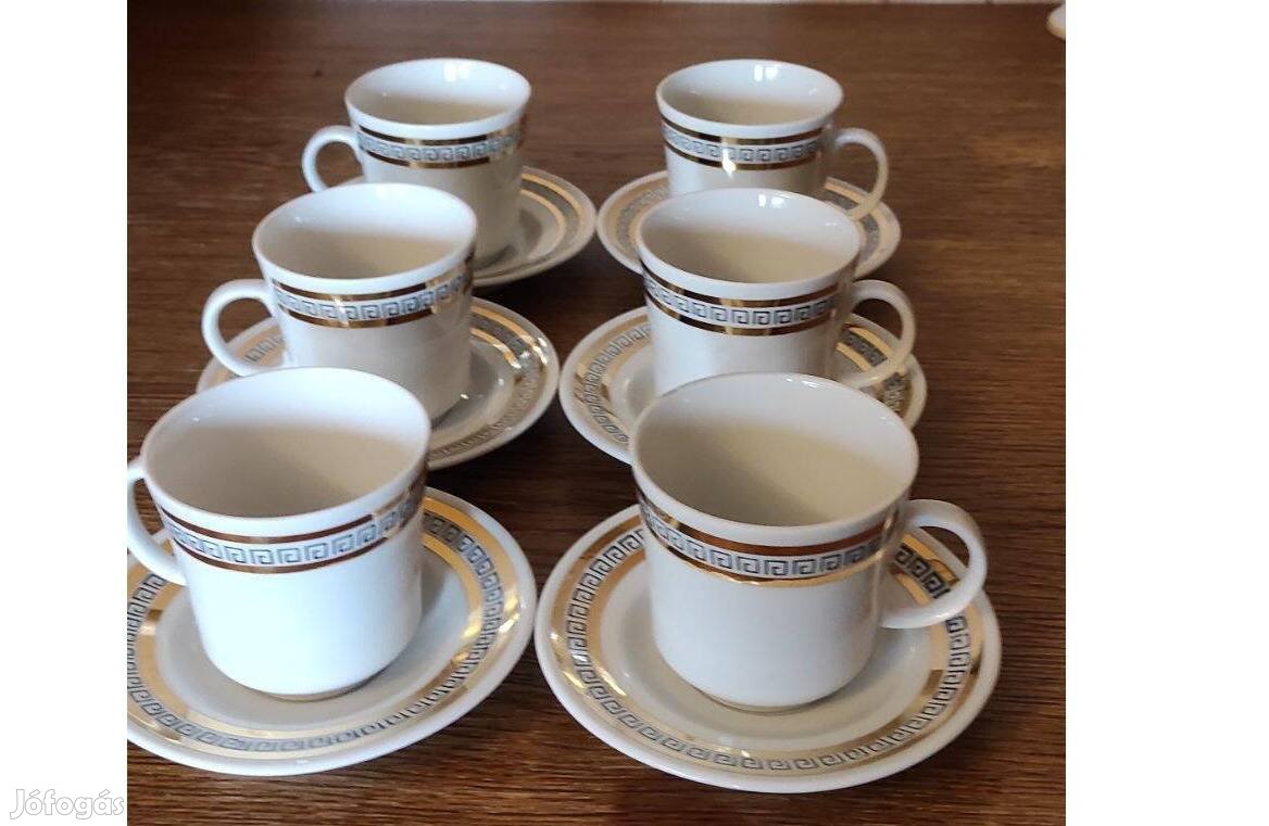 Retro Alföldi "Görög mintás" Aranyozott Porcelán Kávéskészlet 70-es