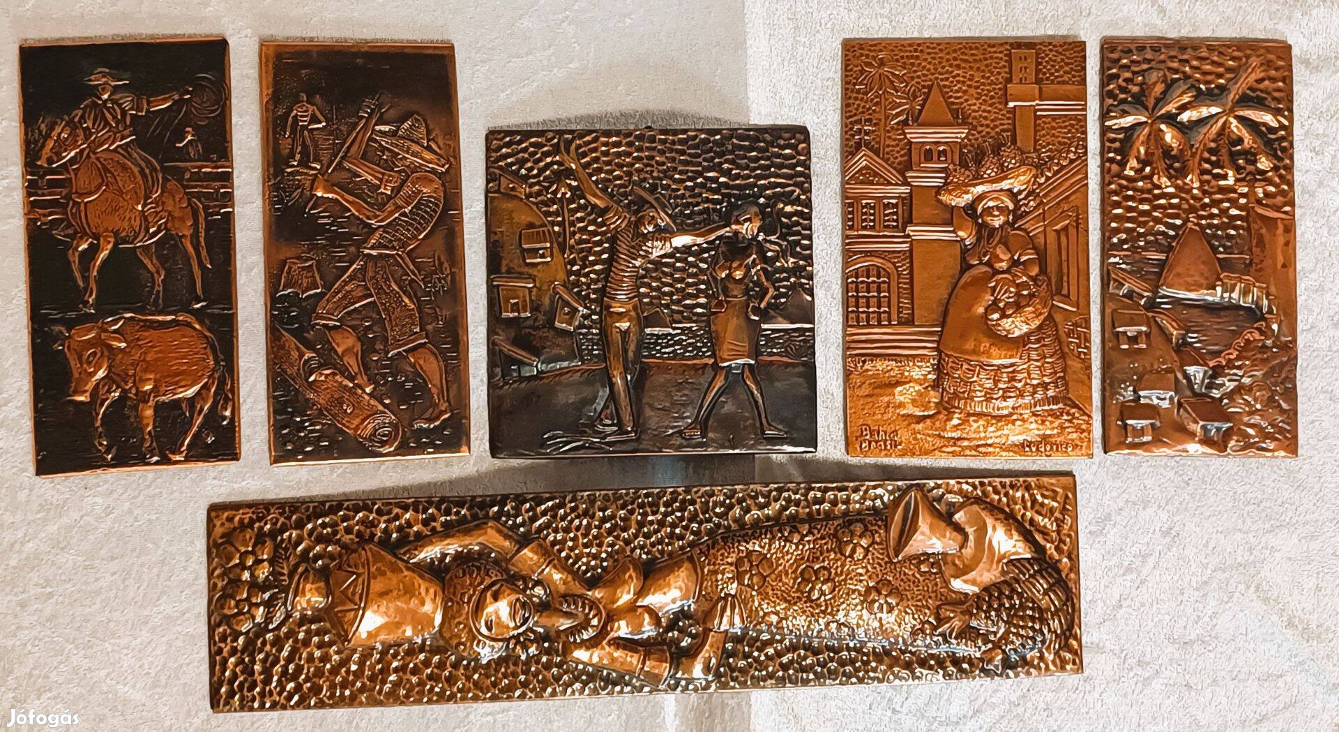 Retro Brazil Réz Falikép Sorozat (6 db) Kézzel kalapált domborművek