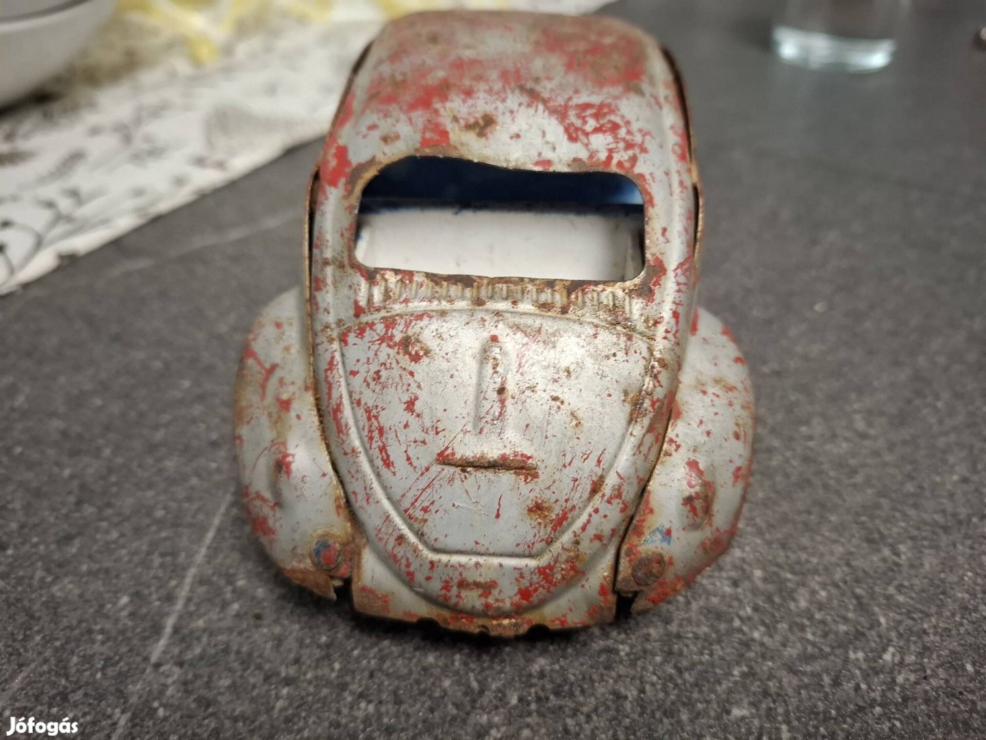 Eladó egy eredeti, az 1960-as évekből származó Volkswagen Bogár típusú bádogjáték, lendkerekes. Ez a modell nem egy mai replika, hanem egy valódi, békebeli darab, amelyen az évtizedek nyoma egyedülálló, autentikus karaktert kölcsönöz a tárgynak.