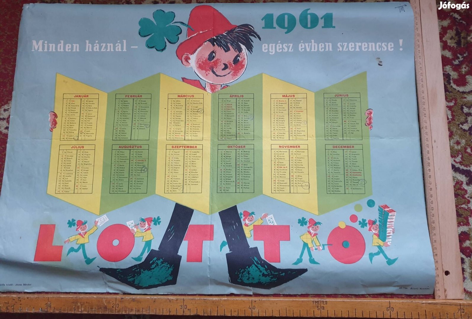 Retró, 1961-es falinaptár gyűjtőknek eladó Xl.ker