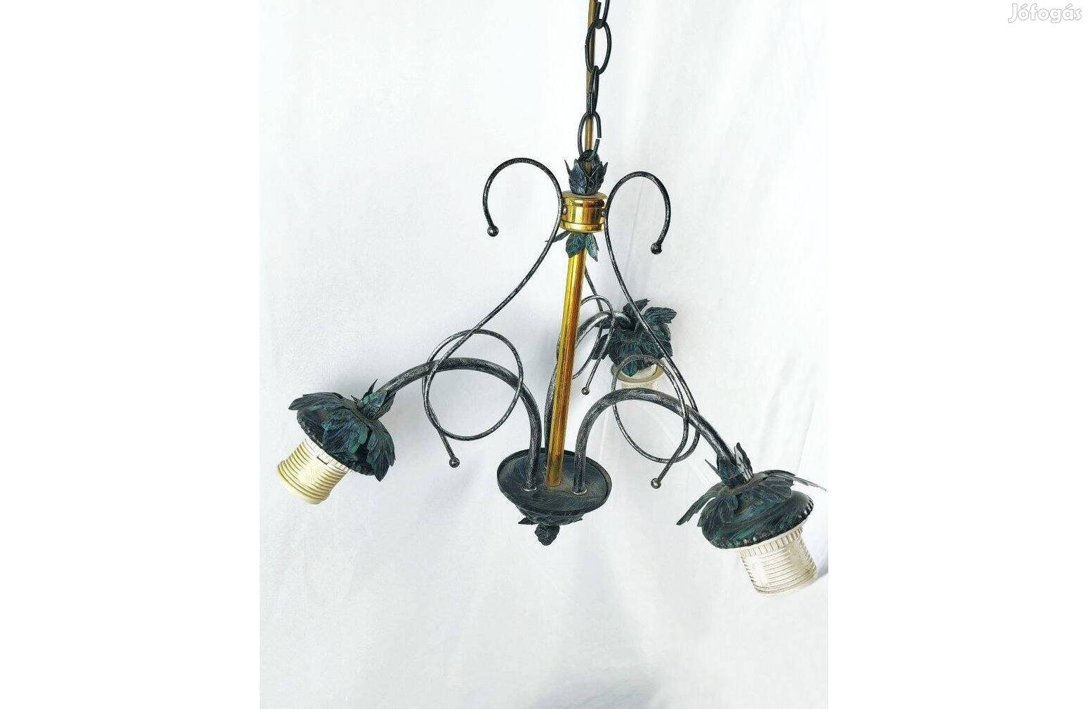 Retro lemez csillár türkiz színű, három ágú, jó állapotú. 77 cm. a hossza.