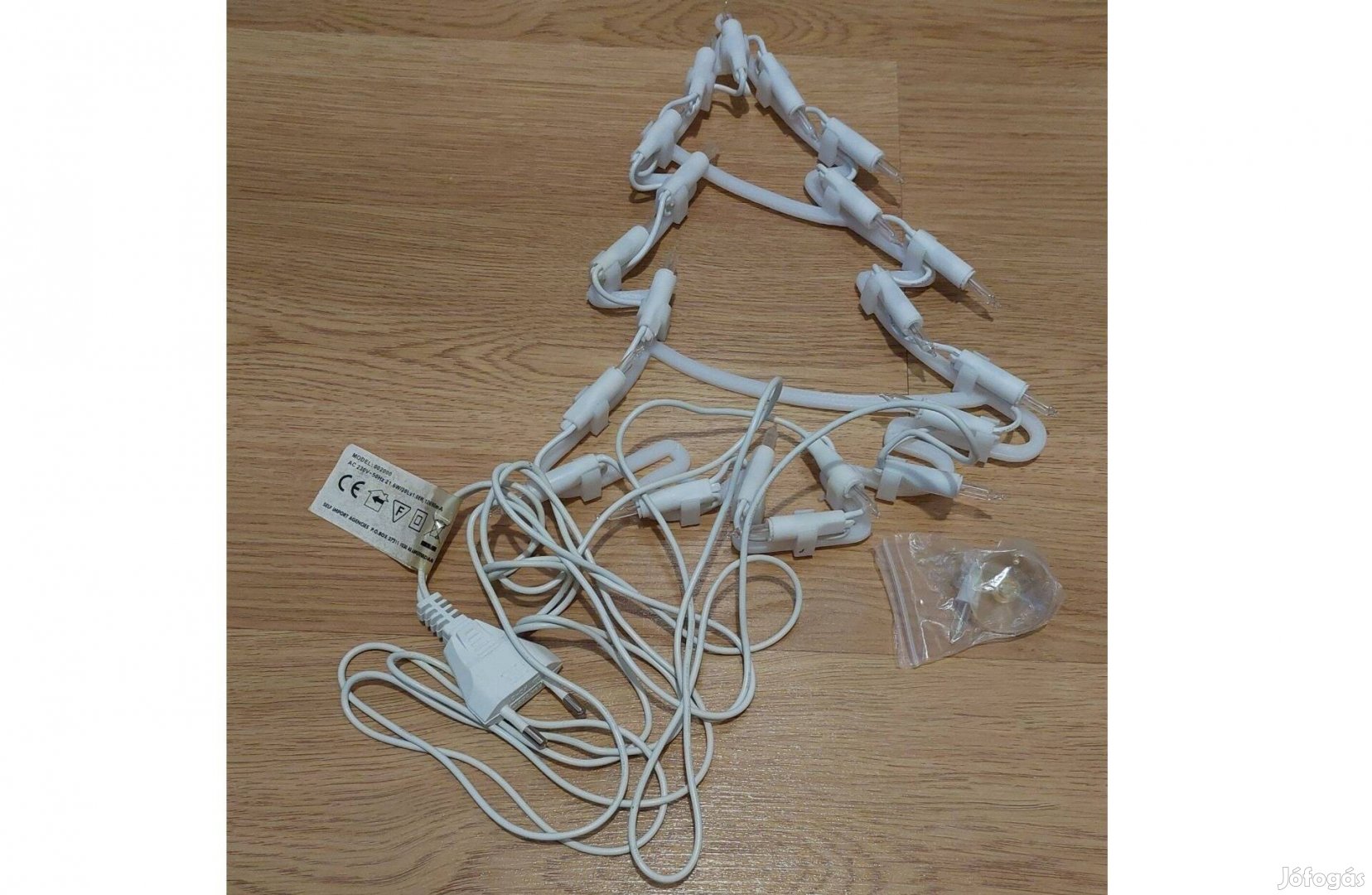 Eladó retro karácsonyfa alakú fényfüzér klasszikus meleg fehér színben, tartalék izzóval. A kerete műanyag, összesen 20 égővel.