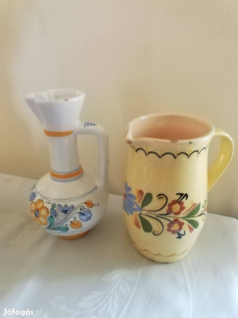Retró, nagyméretű mázas cserép kancsó, bokály, váza, virágtartó, stb