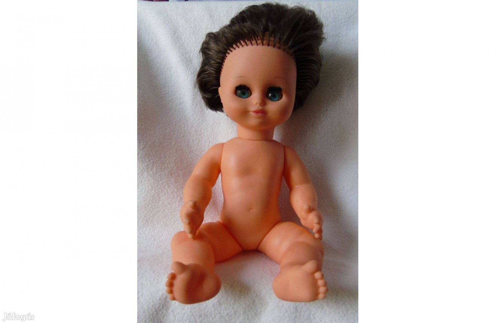 Retro barna hajú kék szemű alvó baba gyermekjáték