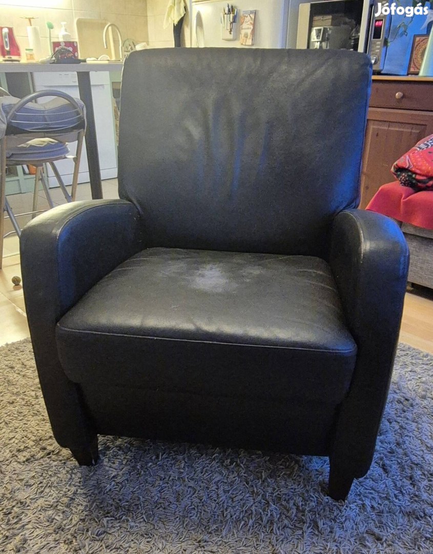 Bőr fotel, használatból eredő kopásokkal. Nagyon kényelmes.