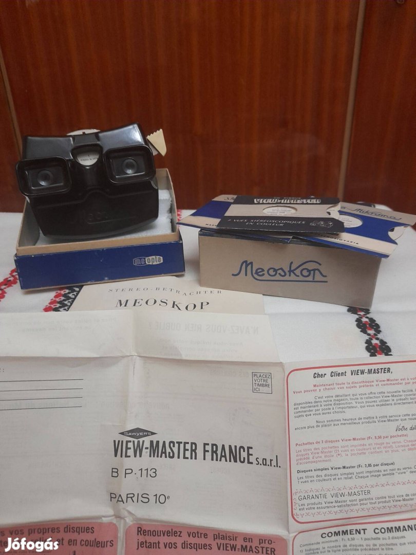 Eladó egy 1960-as évekbeli kör alakú dia néző Meoskop gyártmány ,mely Csehszlovákiában készült .Dobozával ,prospektusával ,és négy darab kördiával eladó .Ára : 5000 forint Budapesten belül ingyenesen kiszállítom ,vidékre postázom Tel számom Dani