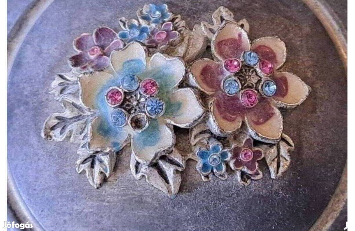 Fém ékszertartó, belül bélelt, tetején díszített.