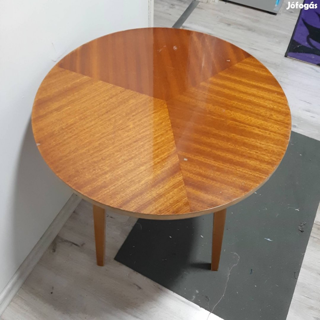 Masszív retro 60cm magas és 60cm átmérőjű asztal. Fényes tetejű fa lábú.Pécelen van, Bp.XVII.ker-ben is átvehető. Szállításban tudok segíteni Bp-re és a közelébe 5e ft-os áron.