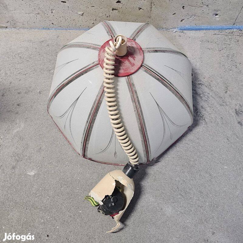 Eladó egy retro függőlámpa. A csatlakozót védő műanyag harang törött, egyébként működik.