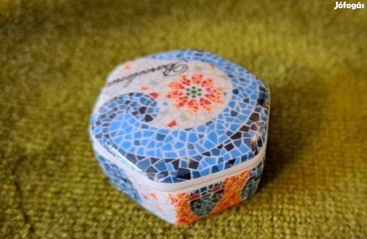 Porcelán ékszer vagy gyógyszer szelence, kis tünemény.