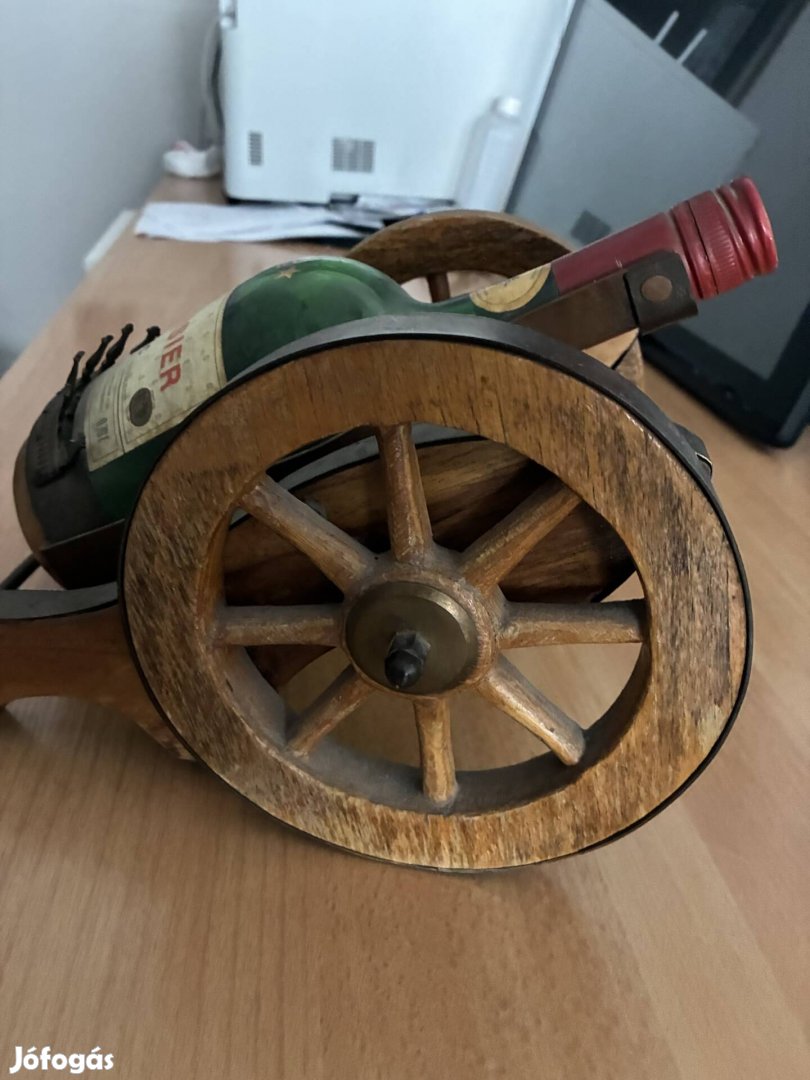 Szinte hibátlan retro üvegtartó ágyú. Fa es réz.