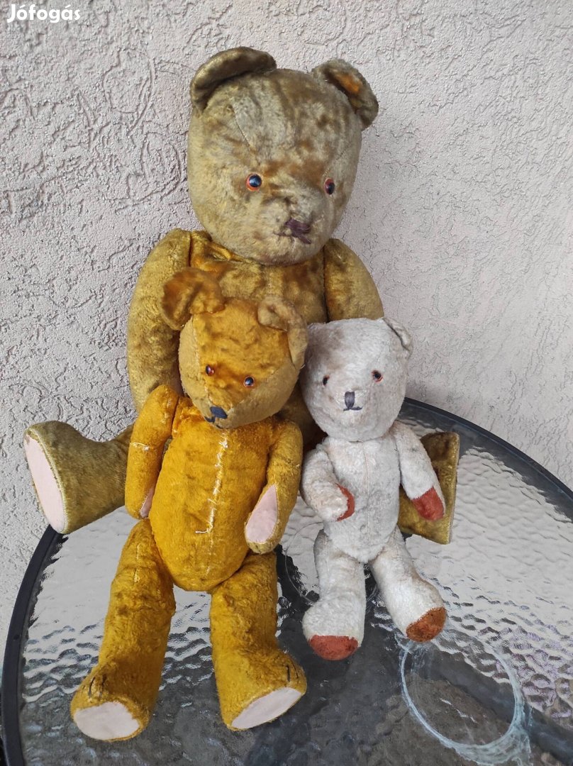 Retró játék mackó, 3 db egyben, a képek szerinti kopottas állapotban, lehetőség dekorációs célokra.Személyes átvétellel!