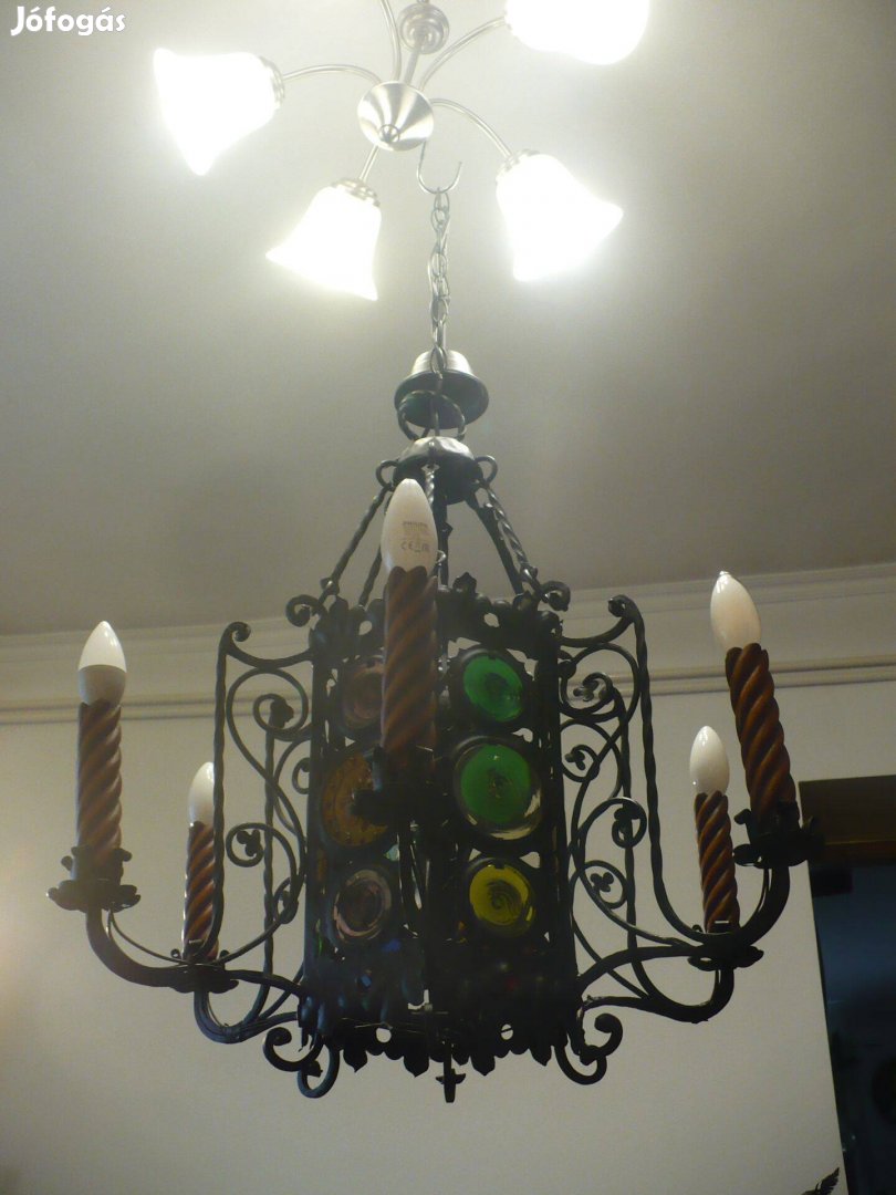 Retro kivitelű kovácsoltvas mennyezeti lámpa eladó, működik, szem. átvét. 17. ker. Rcsaba, további termékek hirdetéseimnél.
