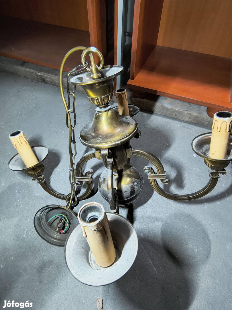Eladó a képeken látható régi használt állapotú Antik Bronz csillár lámpa a képeken látható állapotban.Átvétel személyesen.