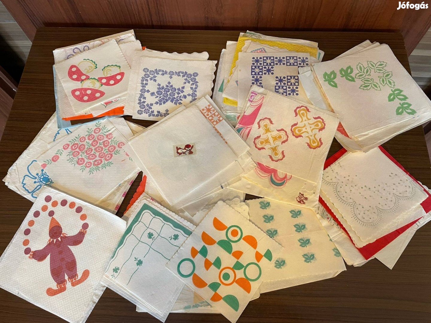 Eladó retro szalvéta gyűjtemény, kb 100 db, a 70-80-as évekből. Gyűjtőknek, nosztalgiázóknak kiváló.